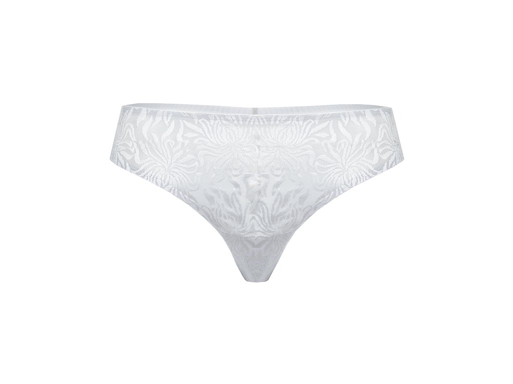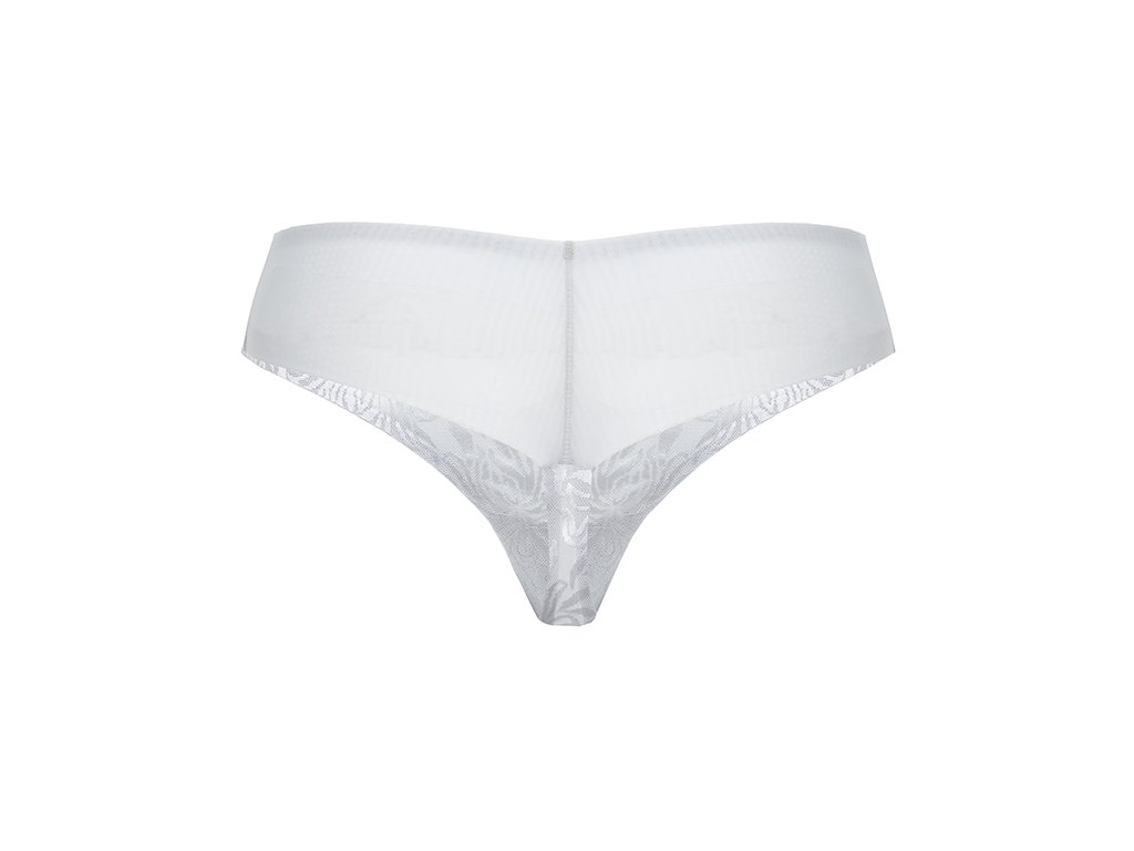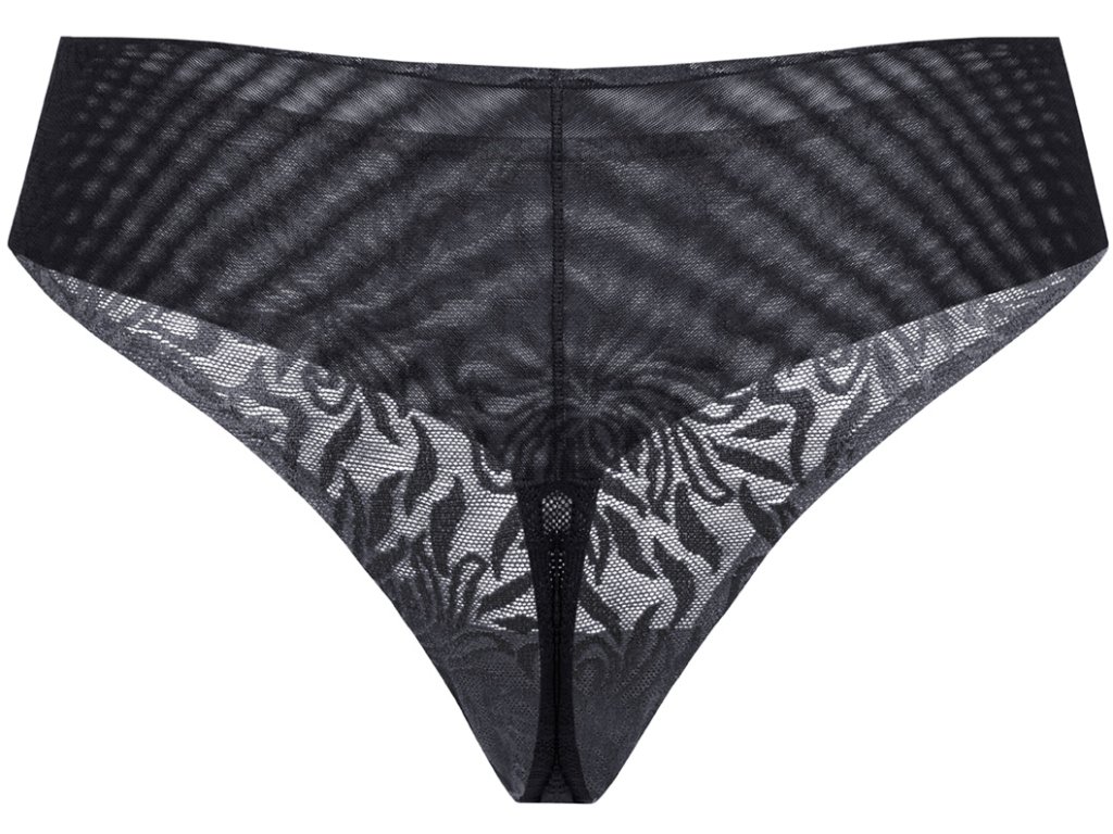 Přední díl tanga s nízkým pasem je z celoplošné krajky a zadní díl z dvojitě zahnuté síťoviny.