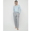 Součástí je top a kalhoty s dlouhým rukávem a kulatým výstřihem a dlouhé kalhoty s kapsami.